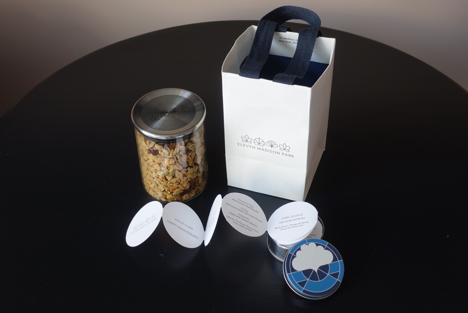 As a farewell present we received a bag with a large jar of homemade granola as well a small tin in which you find your individual menu including wine, indeed a nice touch!